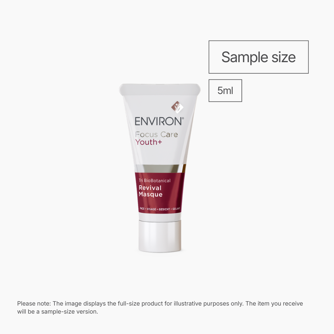 Environ Focus Care Youth+ Tri BioBotanical Revival Masque (5ml) is a powerful resurfacing treatment designed to refine skin texture and restore a smoother, more radiant complexion. Formulated with a synergistic blend of exfoliating acids, it helps accelerate cell turnover, improve the appearance of uneven tone, and reduce visible signs of aging.