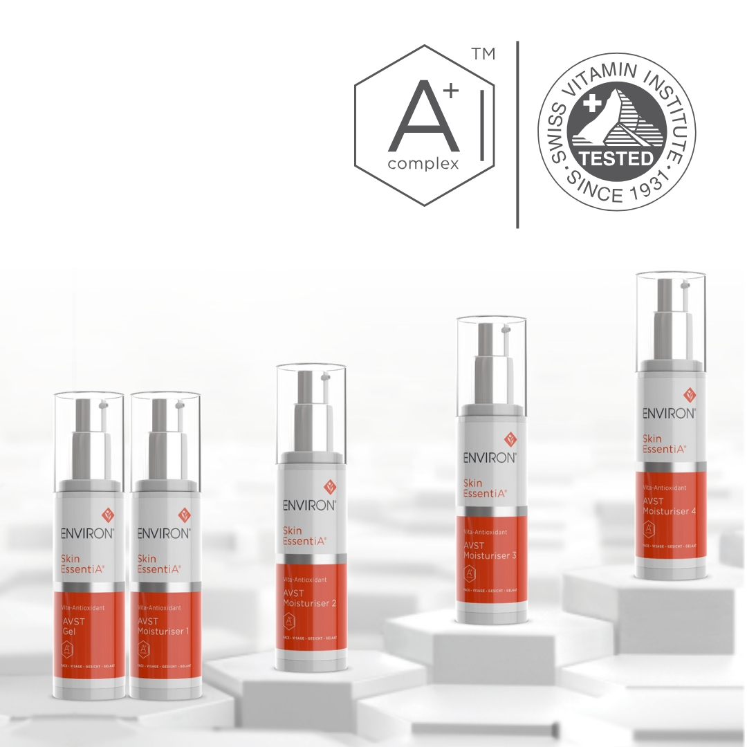 The Vita-Antioxidant AVST Moisturisers have been awarded the Swiss Vitamin Institute certificate which verifies that the products tested contain the vitamin strength declared. This, therefore, guarantees the active efficacy as specified by Environ. The consumer gets a quality product with the said active vitamin content, thereby fulfilling the promise of real results. The products are tested annually to enable them to carry this prestigious certificate of endorsement and, therefore, ensure that the highest standards are maintained.